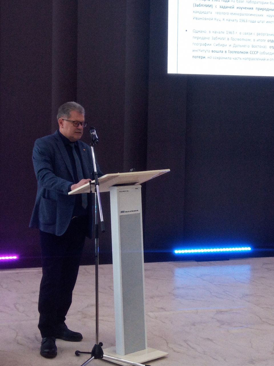 Программа мероприятия включала и выступления современных учёных нашего края. С докладами выступили директор ИПРЭК СО РАН И. Е. Михеев и главный научный сотрудник лаборатории геохимии и рудогенеза Института Г.А. Юргенсон.